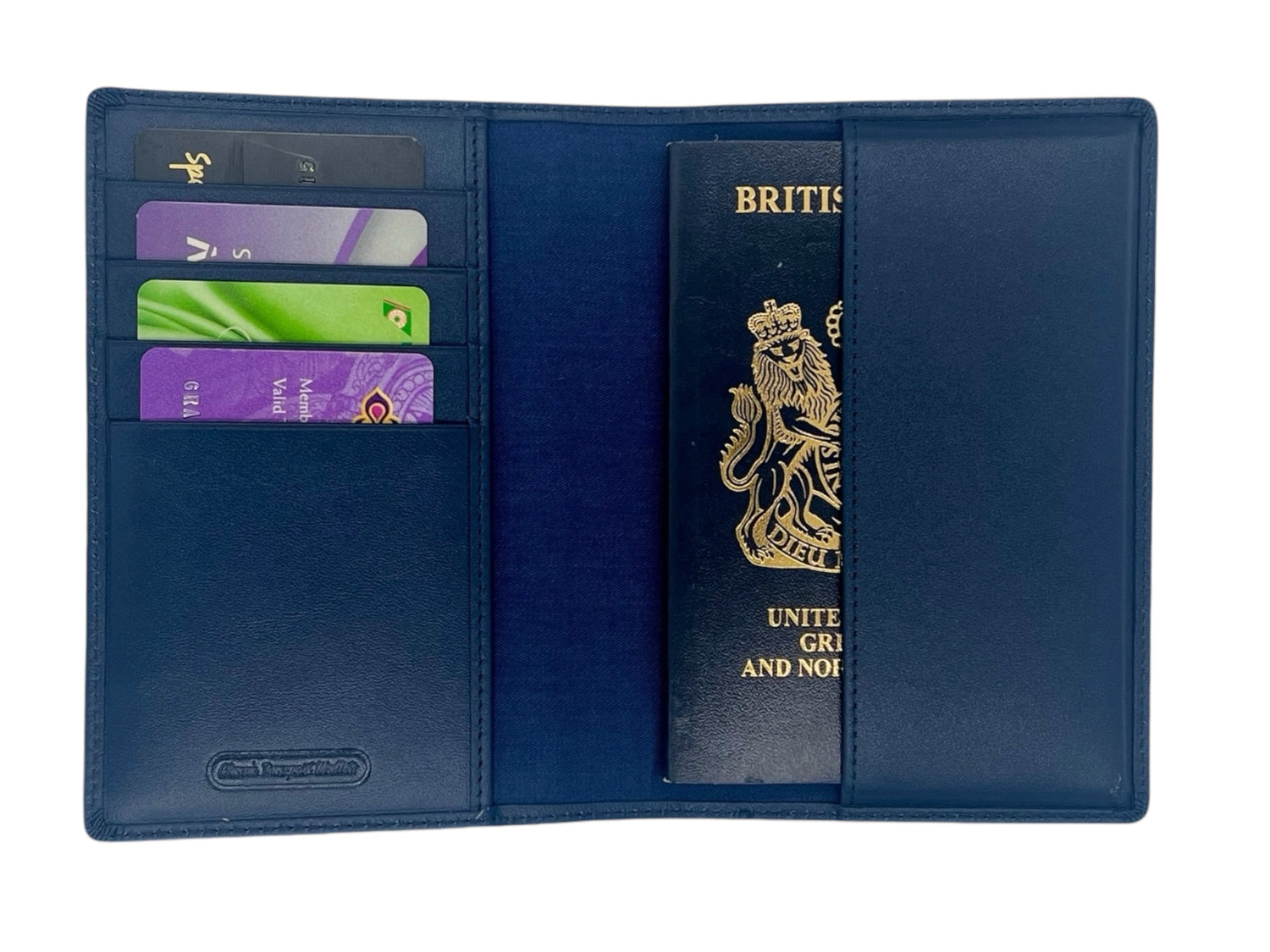 Perfect for the modern traveller, our real leather wallets offer a sleek and secure way to carry your essential cards and passport, reflecting our commitment to excellence and style. The passport is easily removed for checking at border passport controls.